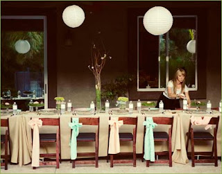 i loveeeee the fabric tied into bows on the back of the chairs.