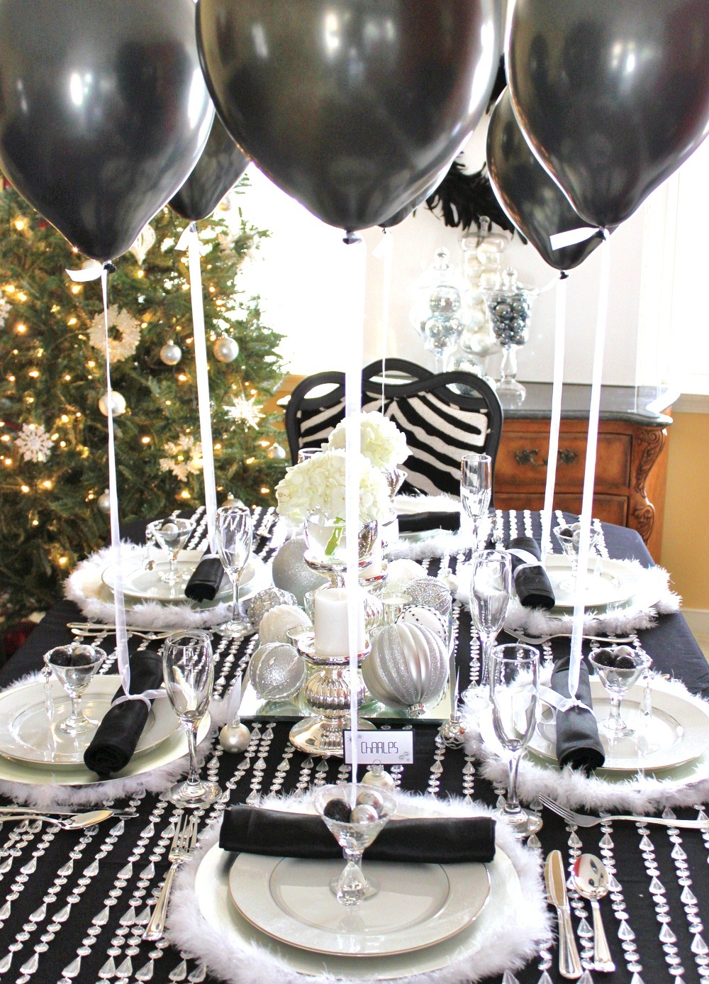 She used touches of White, Silver, Black and a little Shimmer to create this Stunning Party!